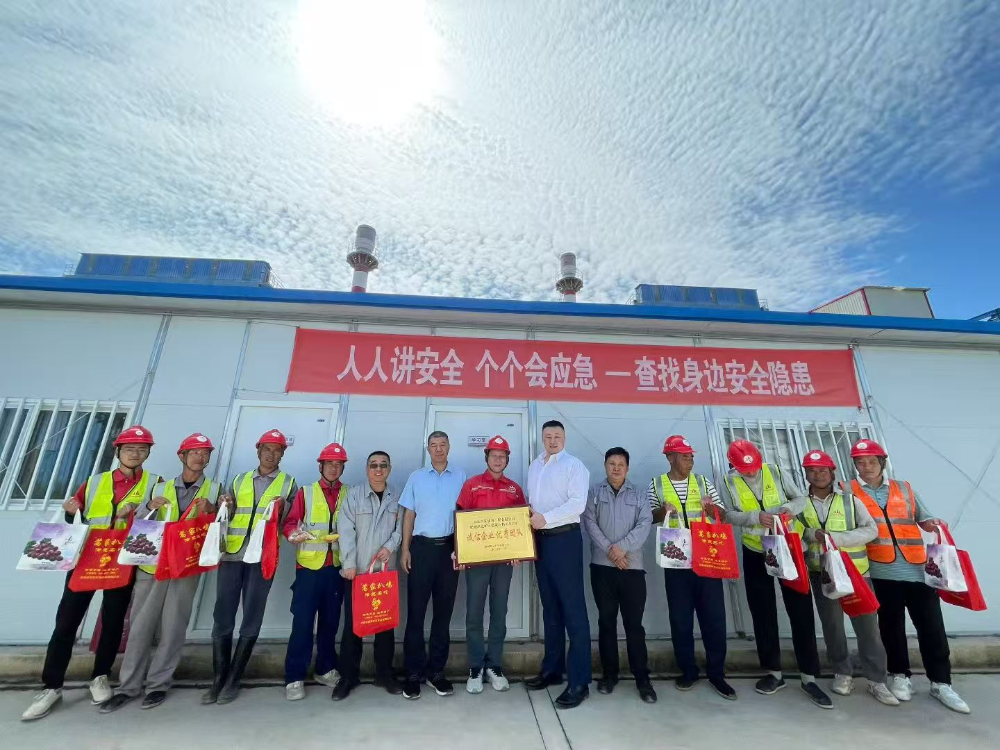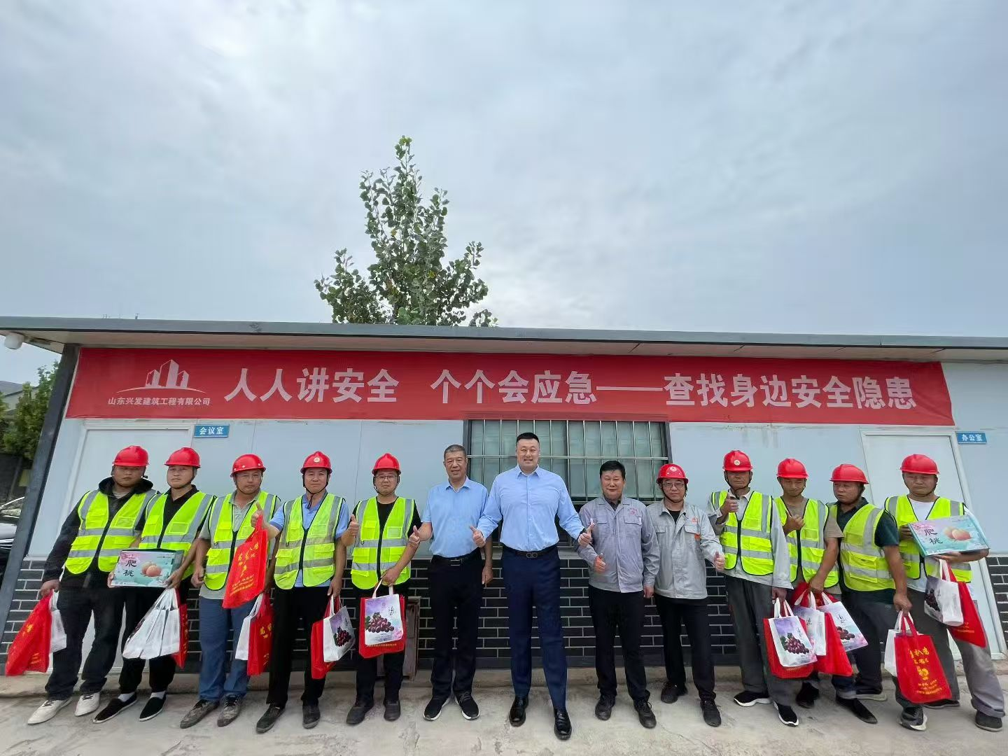 国庆、中秋两节临近,9月17~18日,沈缤董事长带队到公司承建的肥城、枣庄两地矿山项目进行检查慰问,公司常务副总经理于海波,公司安全总监、质安部部长高风顺,兴发子公司总经理丁德利陪同前往。沈董亲自安排为施工一线职工带去了新鲜出炉的扒鸡、月饼等慰问品,深切表达出对一线职工的关爱之情。